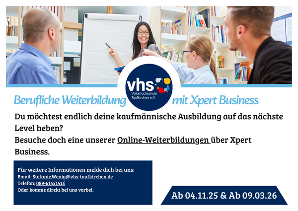 Xpert Business ist das bundeseinheitliche Kurs- und Zertifikatssystem für die kaufmännische Weiterbildung an Volkshochschulen. Xpert Business-Kurse vermitteln fundierte kaufmännische und betriebswirtschaftliche Kompetenzen vom Einstieg bis zum Hochschulniveau.